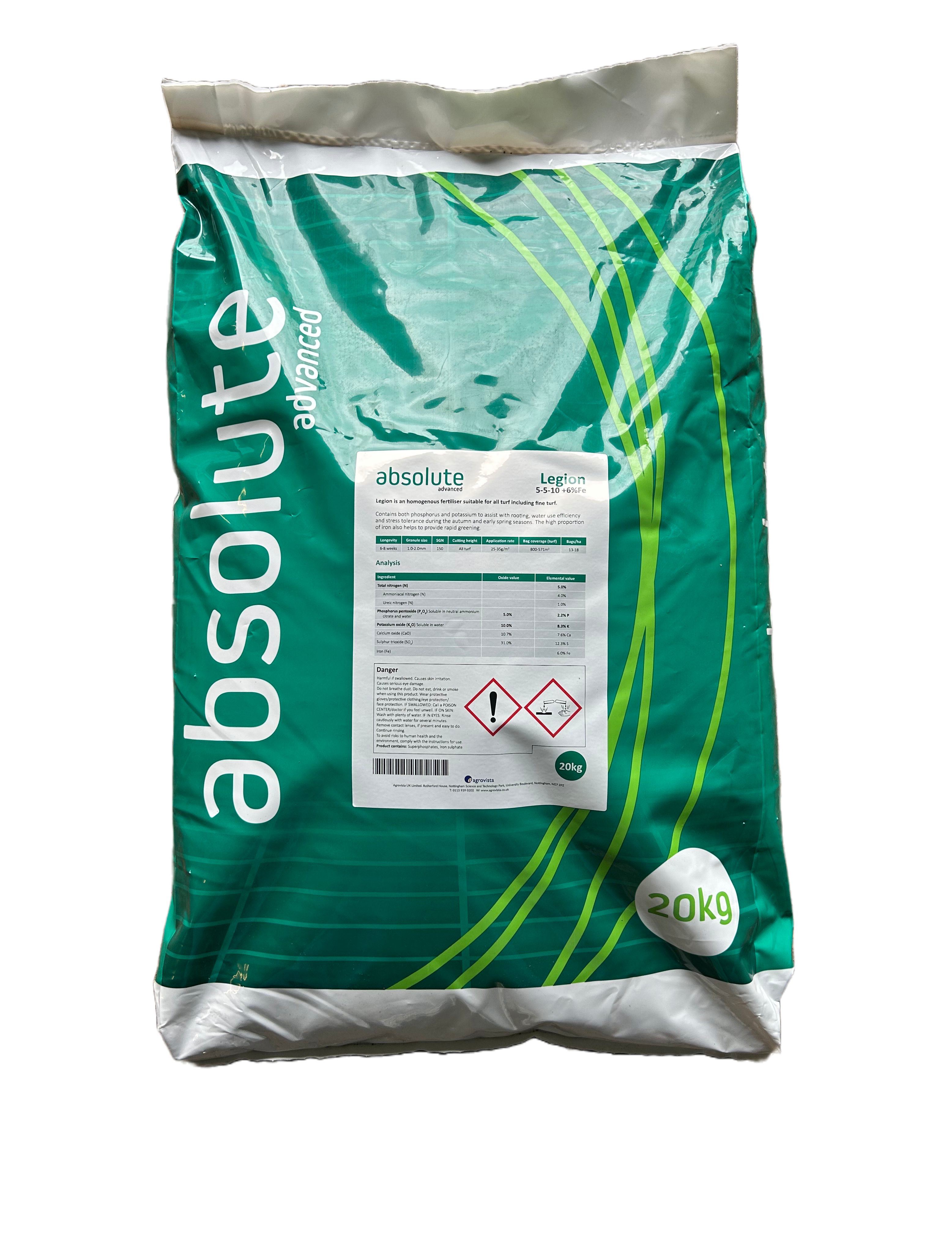 Absolute Advanced Legion contains both phosphorus and potassium to assist with rooting, water use efficiency and stress tolerance during the autumn and early spring seasons. The high proportion of iron also helps to provide rapid greening.