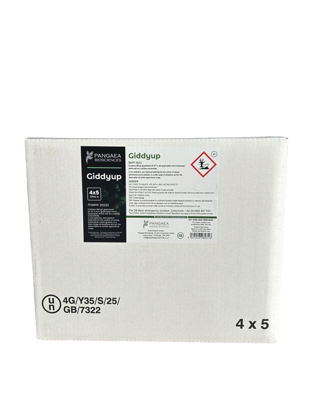 20l Glyphosate 360gl. The Glyphosate 360gl (Giddyup) herbicide, manufactured by Pangaea, is certified for use on farm land and weeded areas. This outdoor product is ideal for controlling weeds. The product is specifically designed to provide effective weed control in outdoor environments Effective Weed Control on Gardens, Paths, Patios and Driveways. Highly Effective on a wide range of Weeds. |