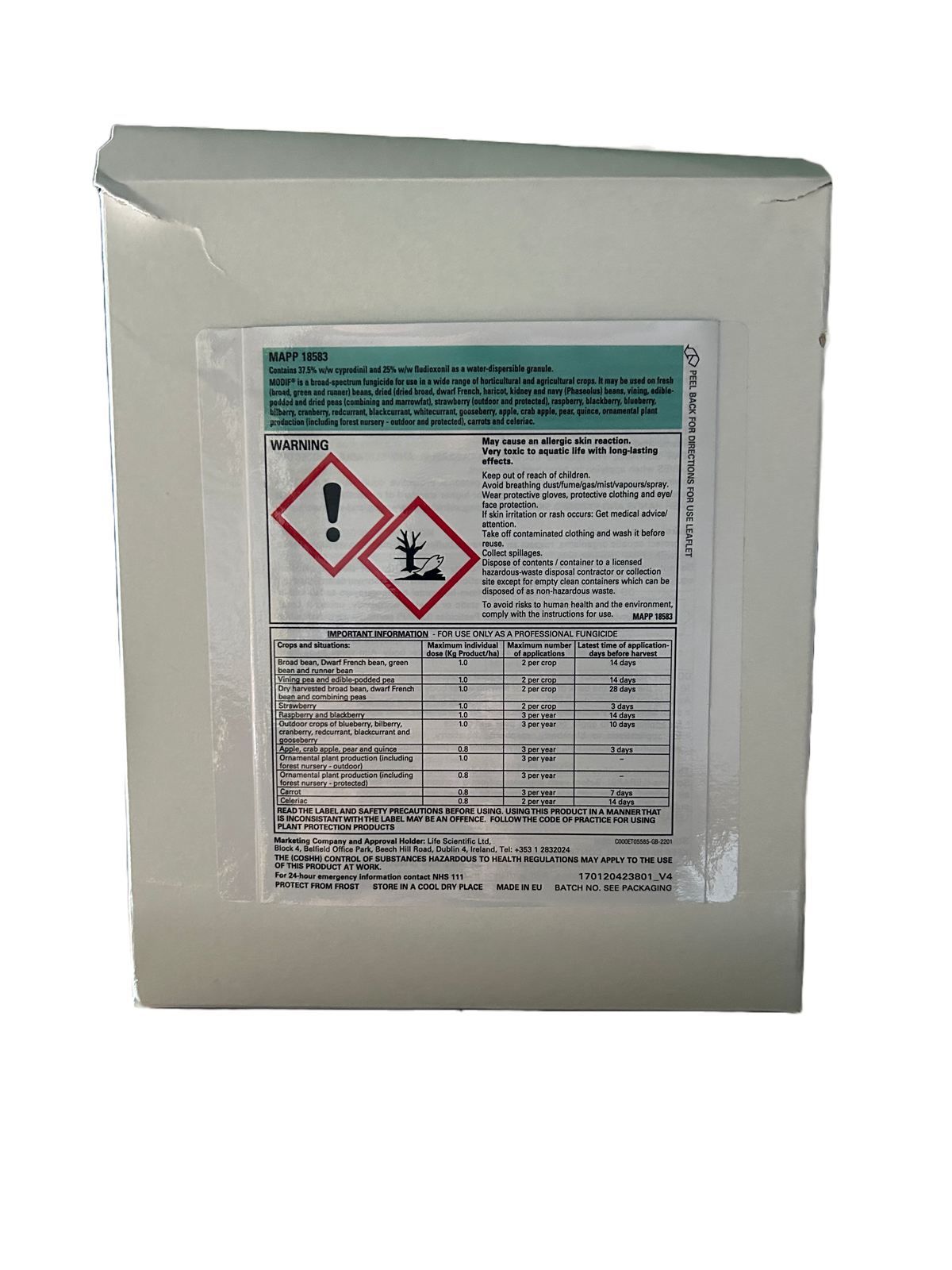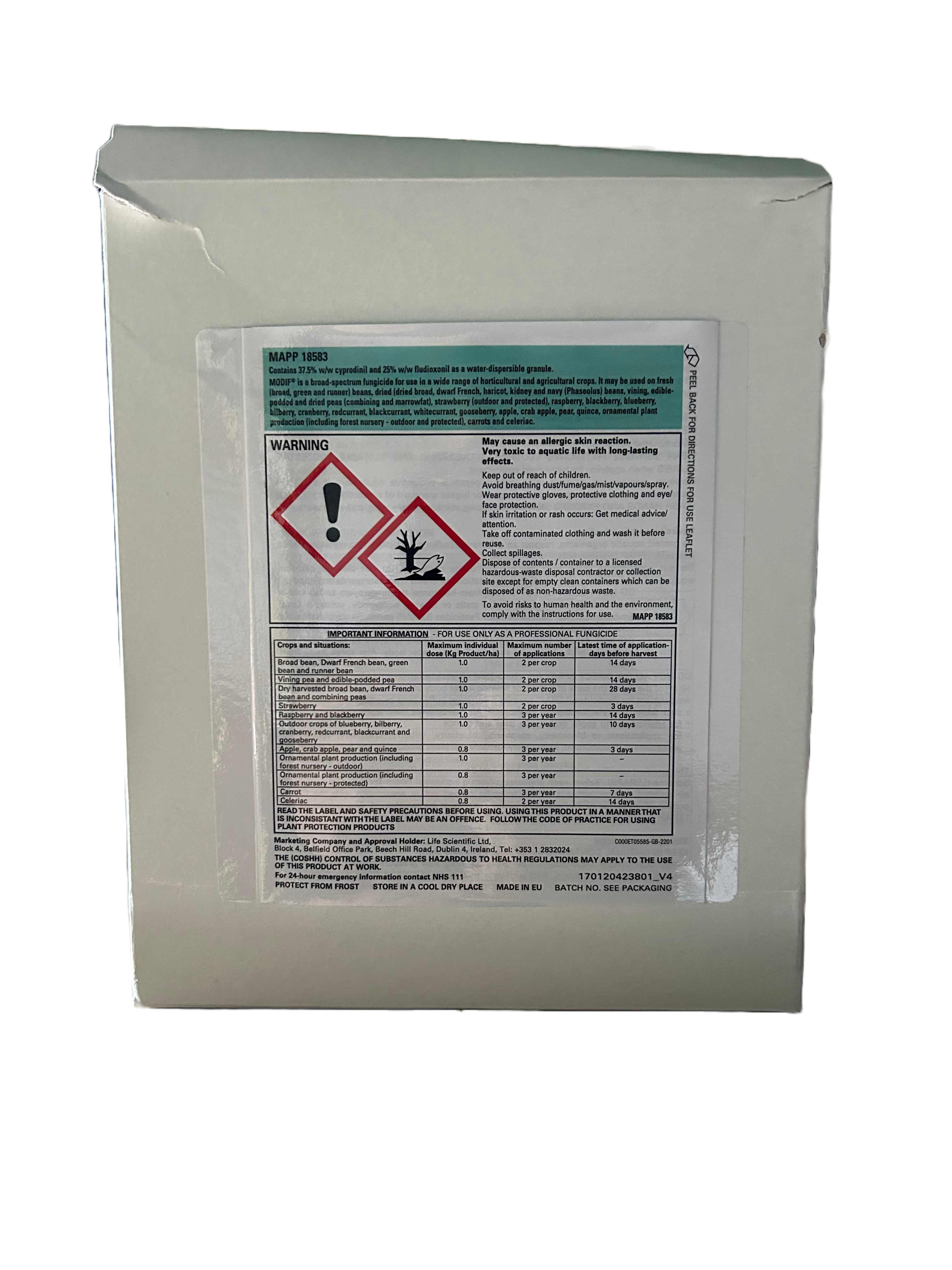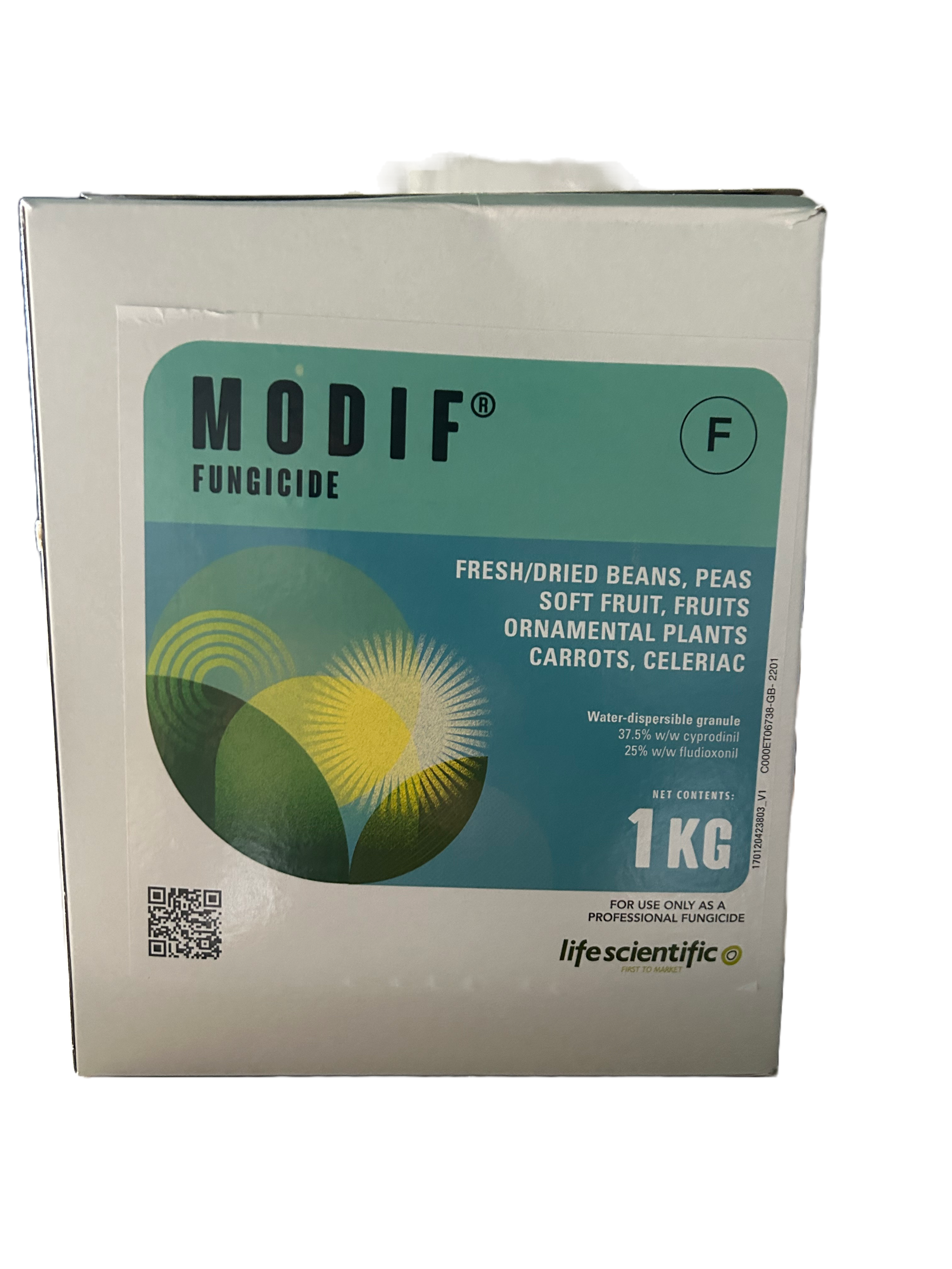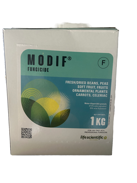 Modif is a co-formulation of cyprodinil and fludioxonil for the control of a range of diseases in ornamental plant production and in a range of both vegetable and fruit crops.