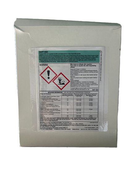 A broad spectrum fungicide for use on fresh beans (green, runner, broad), dried beans (dwarf French bean, navy bean [Phaseolus], kidney beans, haricot beans, dried broad beans), vining pea and edible podded pea, dried peas (combining peas including marrowfat), carrots, celeriac, protected and outdoor strawberry, protected and outdoor raspberry and blackberry, outdoor crops of blueberry, bilberry, cranberry, redcurrant, blackcurrant, white currant, gooseberry, top fruit (apple, pear, quince, crab apple) and protected and outdoor ornamental plant production and forestry nursery
