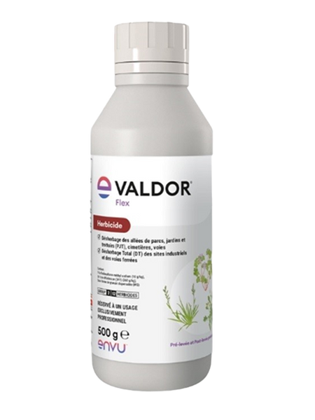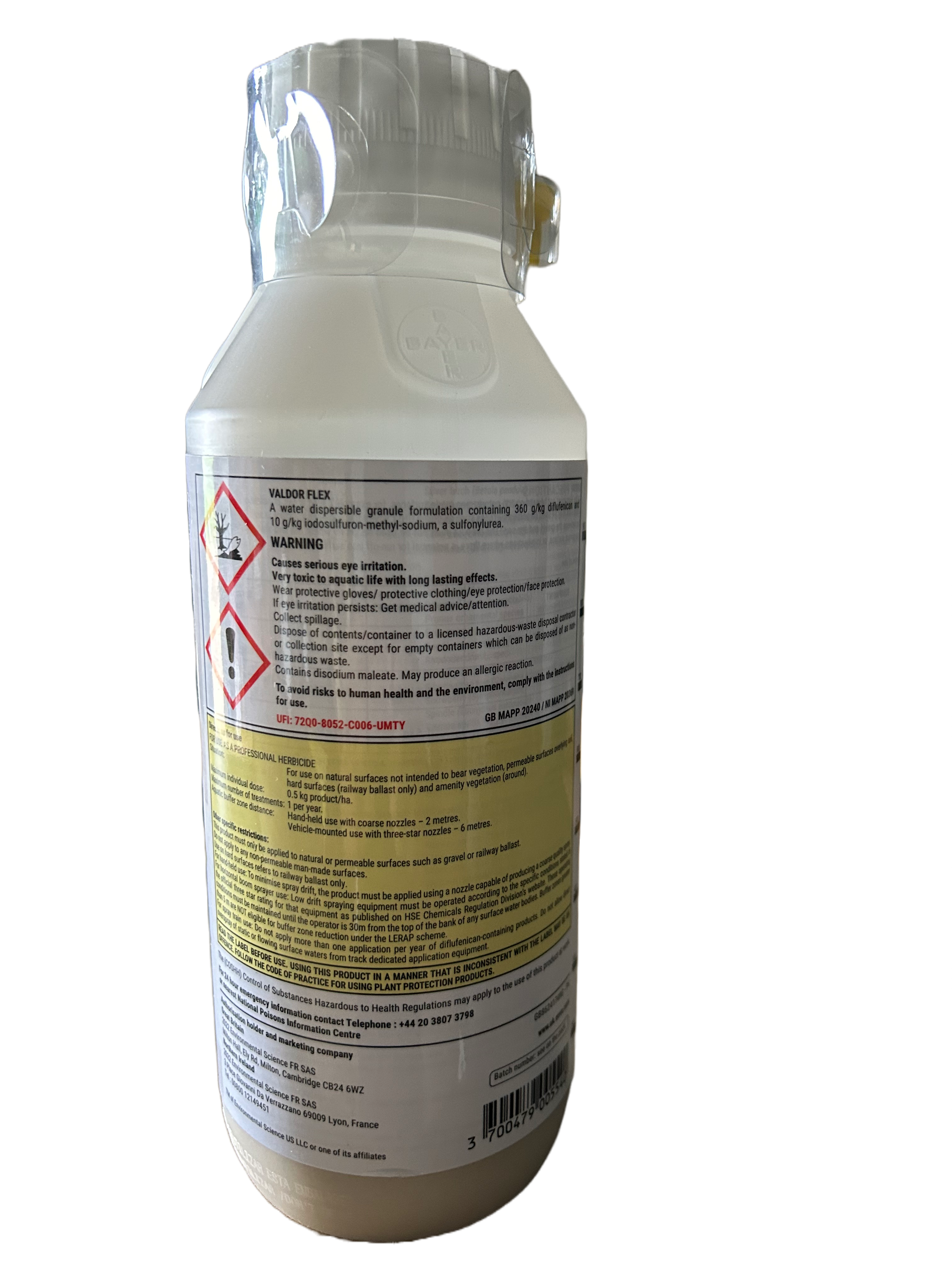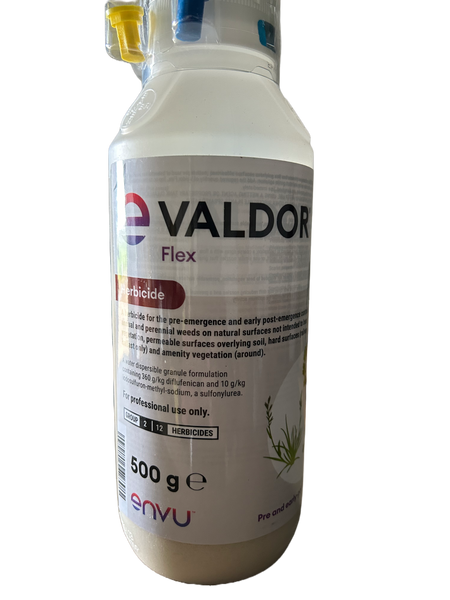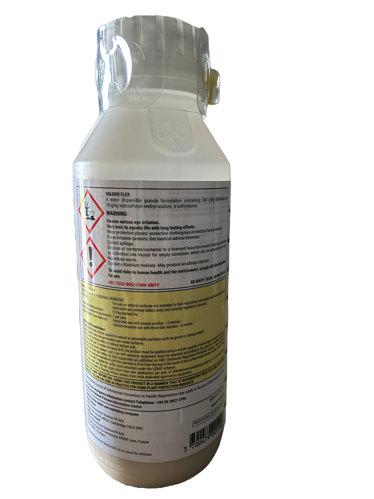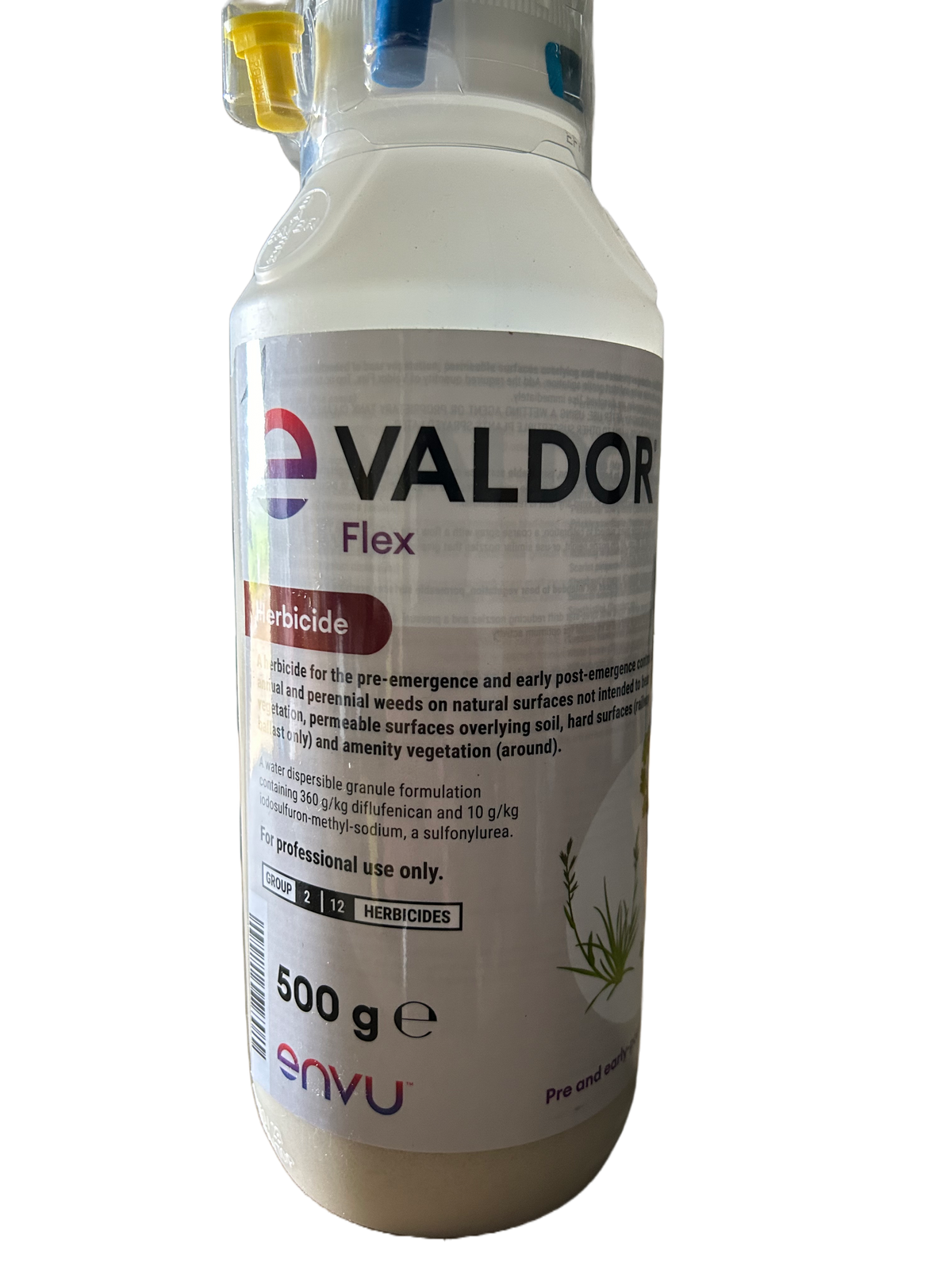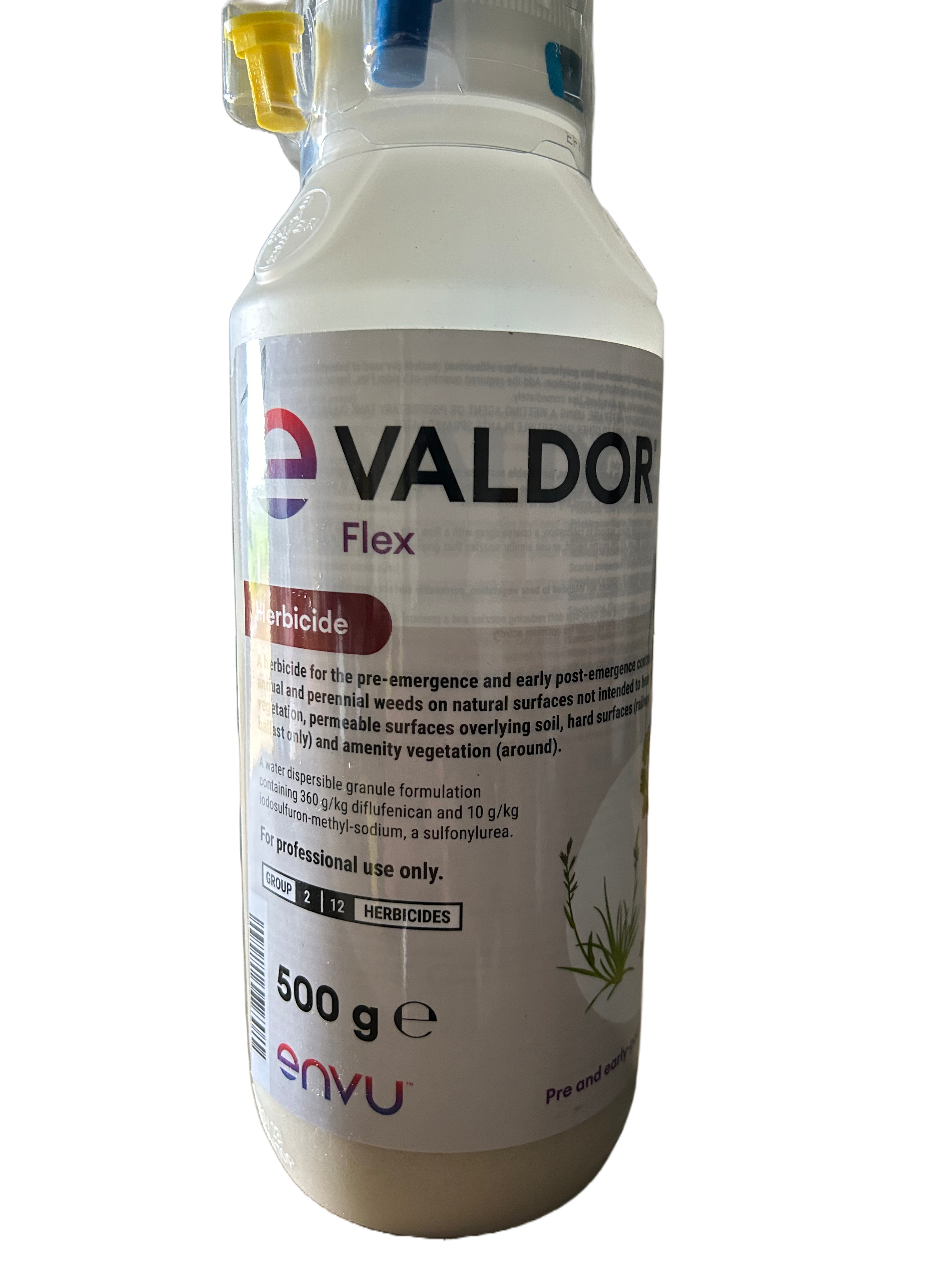 These active ingredients complement each other and improve the result compared to being applied individually. Valdor Flex controls a broad spectrum of annual and perennial broad-leaved weeds and grasses on natural surfaces not intended to bear vegetation, permeable surfaces overlying soil, and hard surfaces (railway ballast only) and amenity vegetation (around).